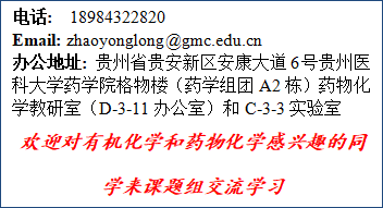 赵永龙,教授,博士生(学术)导师。汉族,1986年8月生,贵州遵义人,中国共产党员。2009年毕业于兰州大学化学(国家基地班)本科专业, 2014年6月在兰州大学功能有机分子化学国家重点实验室有机化学专业获理学博士学位。于2014年7月到3044永利集团(原贵阳医公司)药物化学教研室工作,现任药物化学教研室副主任,兼任中国民族医药学会方药量效研究分会常务理事、中国医药教育协会中医药慢病防治与教育工作委员会常务委员、贵州省药学会药物化学分会委员,教育部学位与研究生教育发展中心学位论文评议专家,Organic Letters和Organic Chemistry Frontiers等国际期刊杂志审稿人等。先后入选3044永利集团青年骨干教师,中组部第十七批“西部之光”访问学者,3044永利集团“优秀教师”和“师德先进个人”,3044永利集团优秀本科和硕士论文指导教师等称号;指导员工获校级本科和硕士优秀毕业论文、研究生国家奖学金、第三届西部地区药学研究生创新学术论坛二等奖、第二届全国药学研究生学术研讨会口头报告优秀奖和贵州省普通高等公司优秀毕业生等多项奖励。课题组长期从事不对称催化、药用活性天然产物深度开发和靶向药物方面的研究工作。迄今为止主持国家自然科学基金项目2项,其它省部级和市厅级项目近10项。以第一或通讯作者在Journal of Medicinal Chemistry、Green Chemistry、Organic Letters、Organic Chemistry Frontiers等国际著名刊物上发表研究论文20余篇,申请发明专利4项,授权3项。