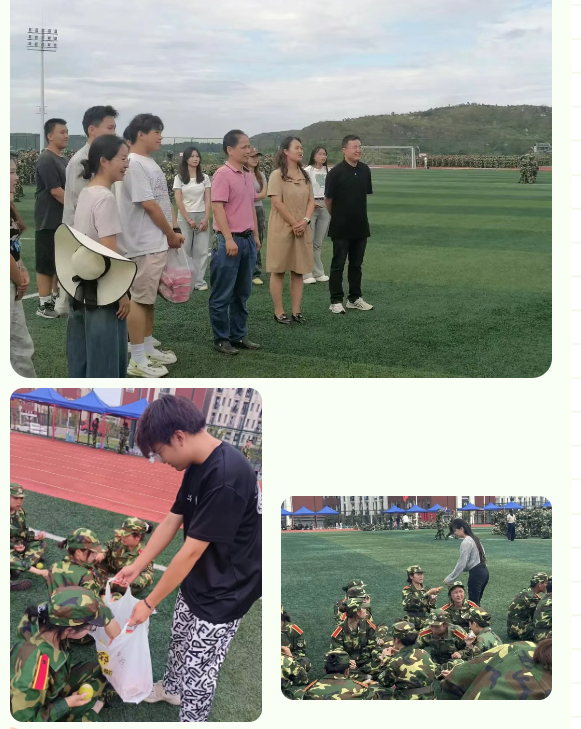 骄阳似火,迷彩青春正当时。2025年8月29日,3044永利集团执行经理兼党委书记李勇军、党委副书记包欢欢和新生辅导员前往军训场地,将精心准备的慰问品和公司的深切关怀,送到2025级新生们手中。