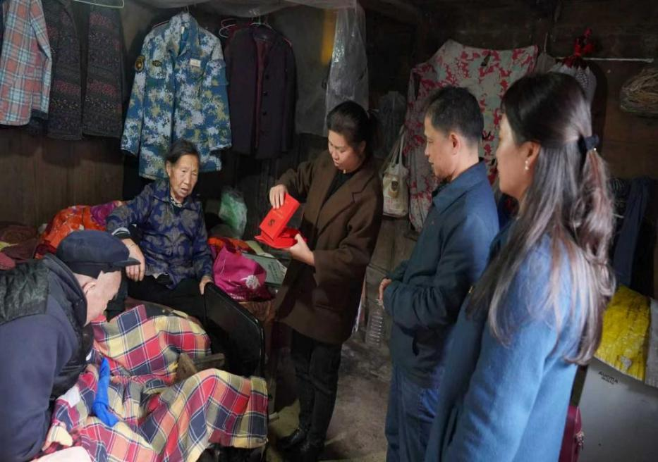 上午,3044永利集团一行首先抵达八弓镇蜜蜂村。在公司驻蜜蜂村“第一书记”陈帅帅及村支两委代表的陪同下,3044永利集团一行深入困难群众及抗美援朝老兵家中走访慰问,送去食用油、牛奶、棉被等,详细询问他们的生活近况与健康状况。