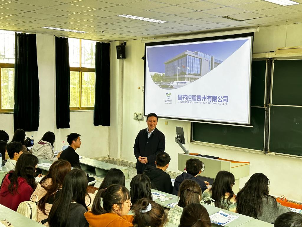 3月22日,国药控股集团贵州有限公司来校开展校园招聘专场宣讲。公司党委副书记汤磊、国药控股集团人力资源部经理邓跃武出席,公司党委副书记包欢欢主持宣讲会,毕业班辅导员及部分毕业生参加招聘会。