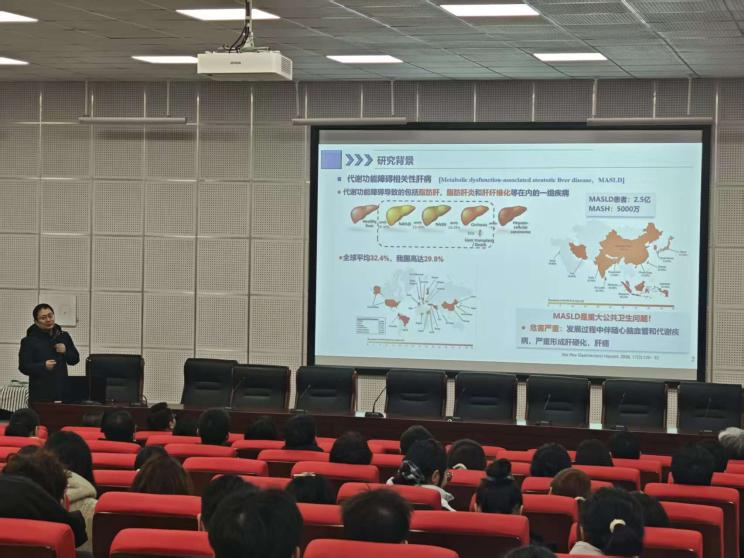 徐晓军教授长期深耕降脂中药活性物质基础及作用靶标研究,在天然产物药物研发领域成果显著。报告中,他围绕代谢功能障碍相关性肝病(MASLD/MASH)治疗现状展开阐述,强调从中药中挖掘降脂活性成分的重要性,系统介绍了多学科交叉的活性成分筛选技术路径与团队在Hsp90β信号通路调控方面的突破性进展,为新型肝病治疗药物研发提供了理论支撑,给在场师生带来深刻学术启发。